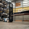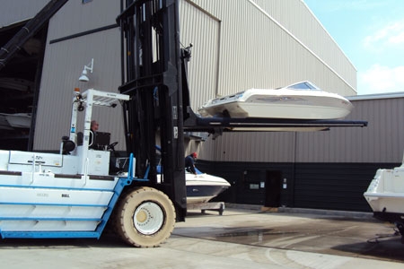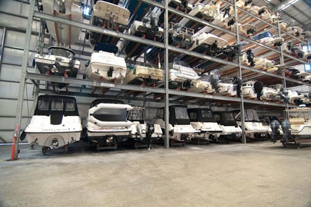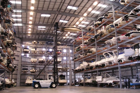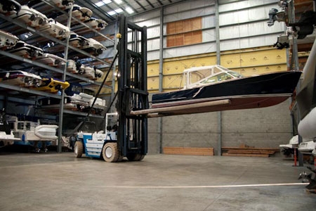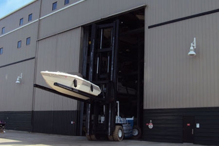 Foss Landing Marina’s state-of-the-art heated, ventilated building provides temperature-controlled indoor storage for boats 18’ to 38’. Boats are stored in a secure dry-stack configuration. A special forklift is used for retrieval to and from dry storage. Boats receive a complete freshwater flush before dry storage; see “services” and “rates” for more information.